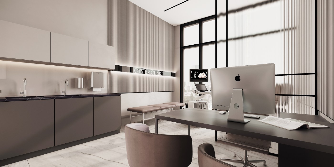 Projekt kliniki medycznej został utrzymany w stonowanej kolorystyce, minimalistycznym klimacie. Projektowana klinika znajduje się w nowoczesnym budynku biurowym z lokalami handlowo usługowymi na parterze – Intraco Prime, przy ul. Stawki 2 w Warszawie.