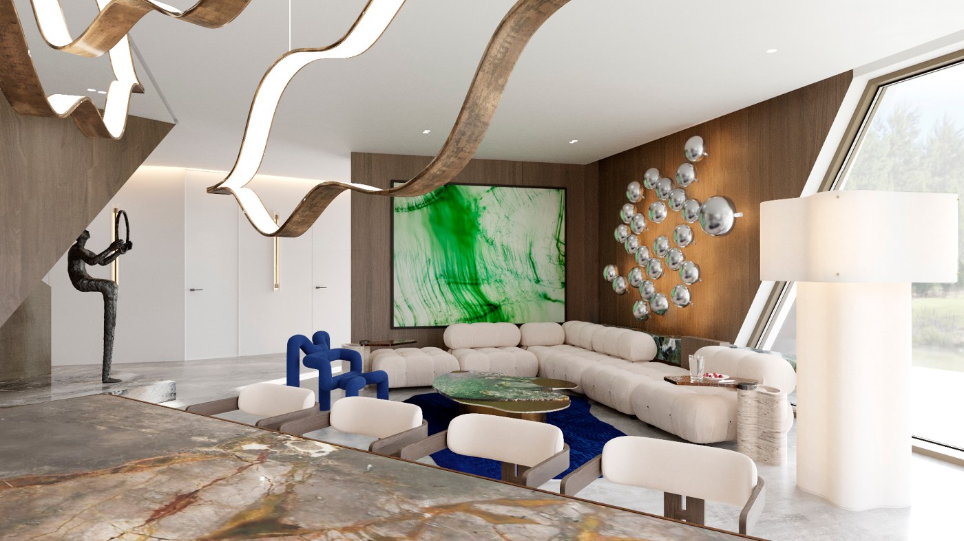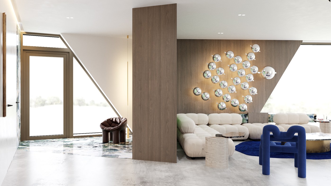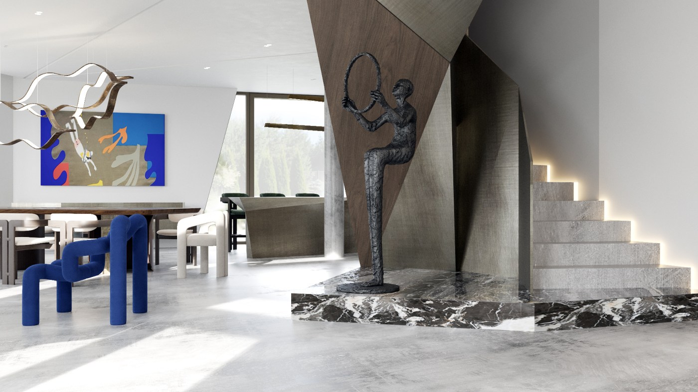 Projekt wnętrz ekstrawaganckiej willi położonej w Berlinie, w dzielnicy Grunewald. Willa została zaprojektowana przez uznaną pracownię Berlińską, ma 700 m.kw., wewnątrz mieści prywatne SPA, windę, nie posiada ogrodzenia i łamie wszelkie schematy projektowe w tradycyjnym rozumieniu słowa „dom”.